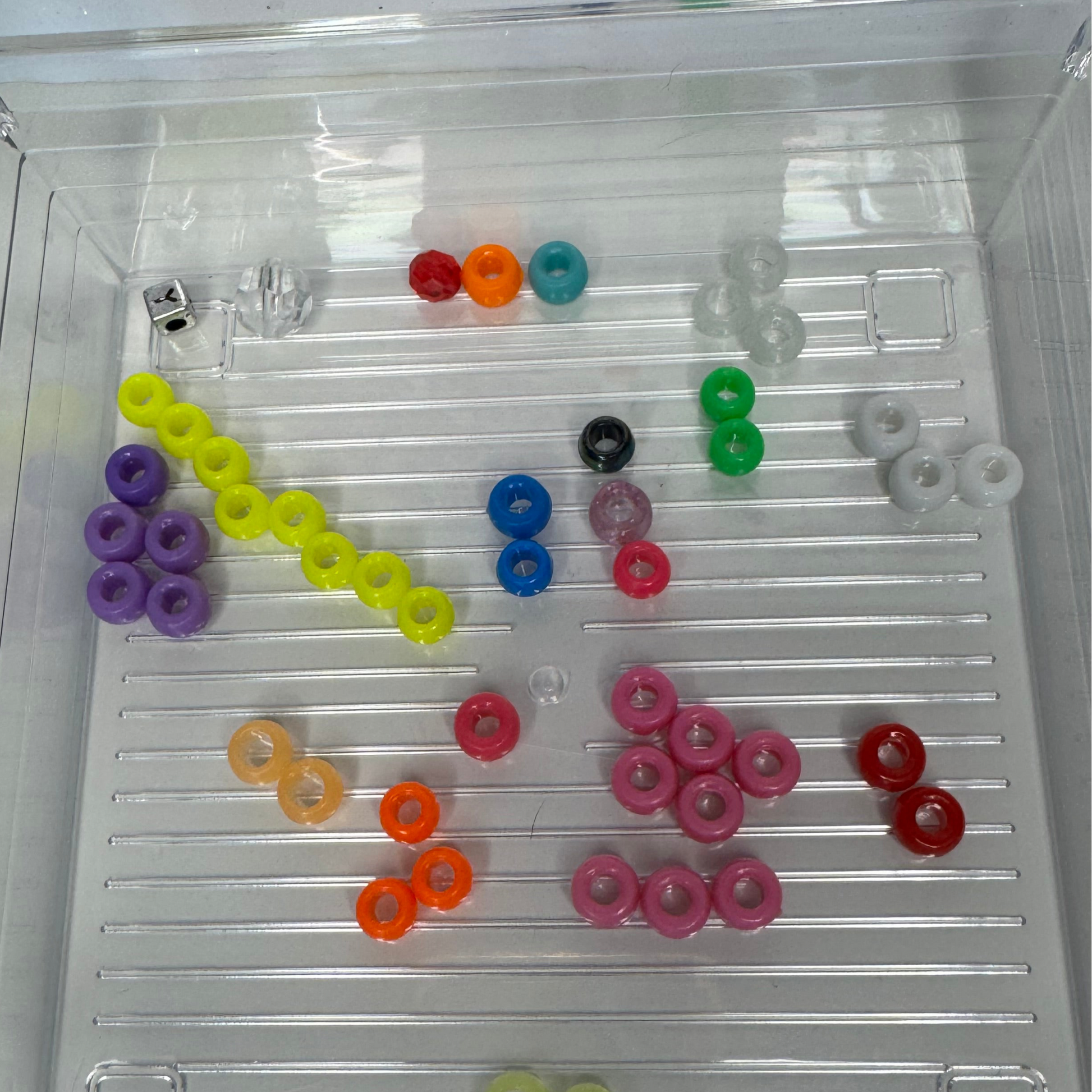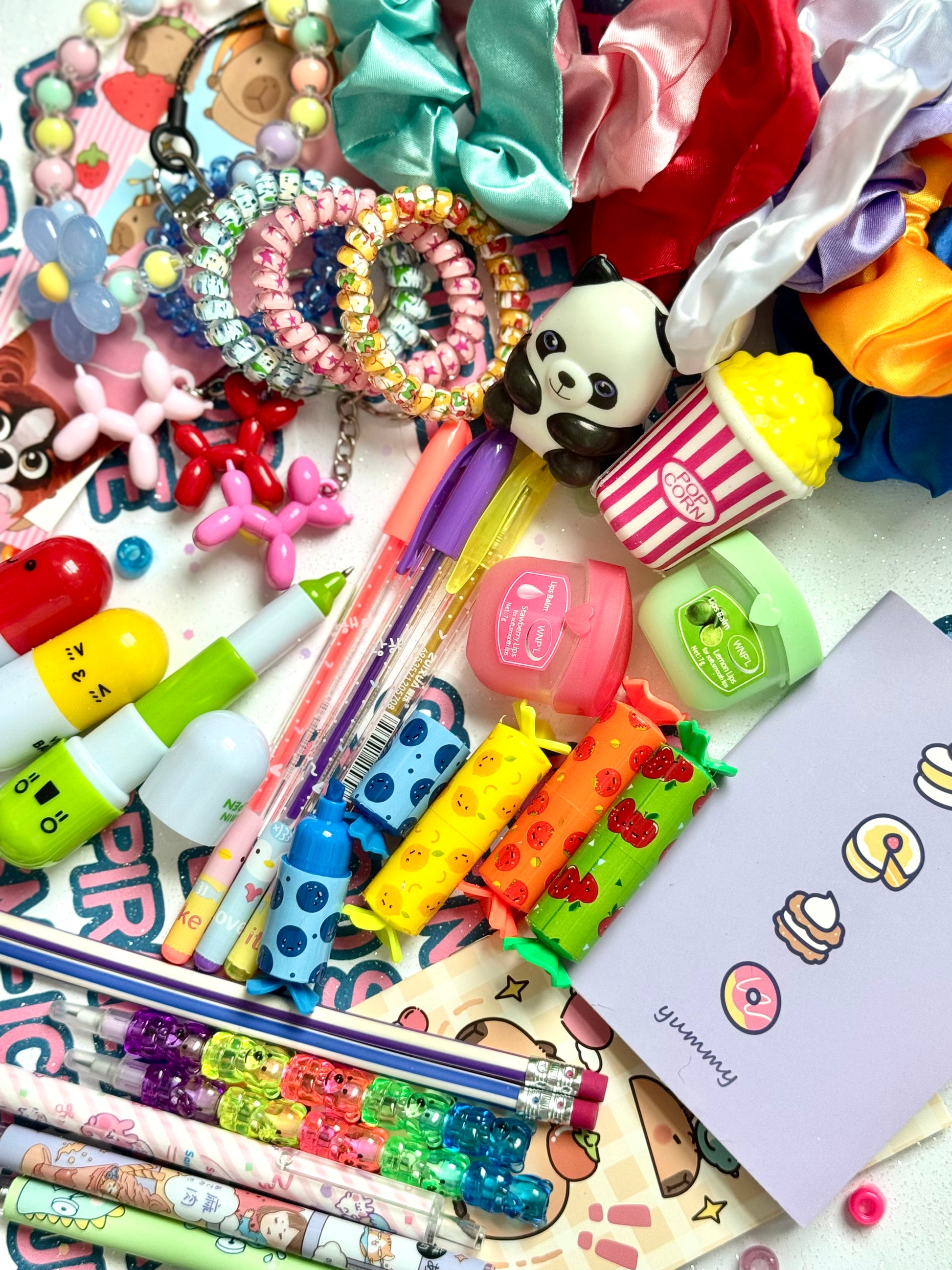 Our Mystery Bead Scoops are perfect for anyone who loves cute and colorful stationery, sensory, accessories, and fun little surprises. Each scoop is full of vibrant beads and here’s the fun part: every bead color scooped corresponds to a specific item on the item list. So the unique mix of colors is what decides what you’ll receive.